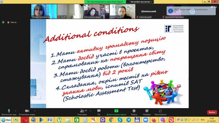 Про актуальні програми мобільності, стипендіальні програми, міжнародні саміти, доступні для студентів ДУЕТ, розповіла Тетяна Петрішина. Зокрема, були представлені програми Великої Британії, США, Словаччини: