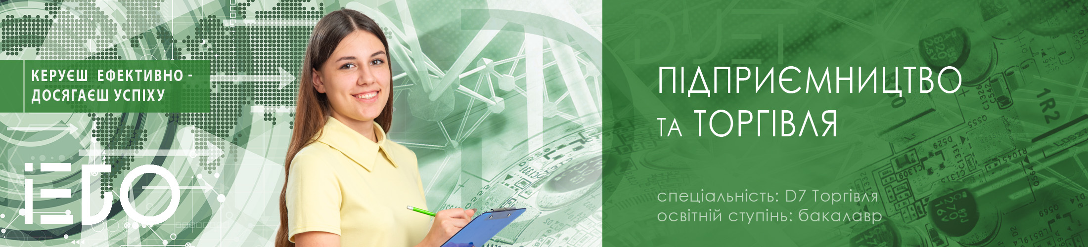 Якщо ви прагнете навчитися правильно вести свій бізнес, вміти адаптуватися до швидких змін в глобальному світі, бути здатними до системного аналізу, щоб досягти максимальних результатів, — вам необхідно обрати спеціальність «Підприємництво, торгівля та біржова діяльність». Це спеціальність, що користується зростаючим попитом на ринку праці, дозволяє реалізувати себе як успішного підприємця, сучасного керівника, креативного стартапера і забезпечити у бізнесі та досягти матеріального добробуту